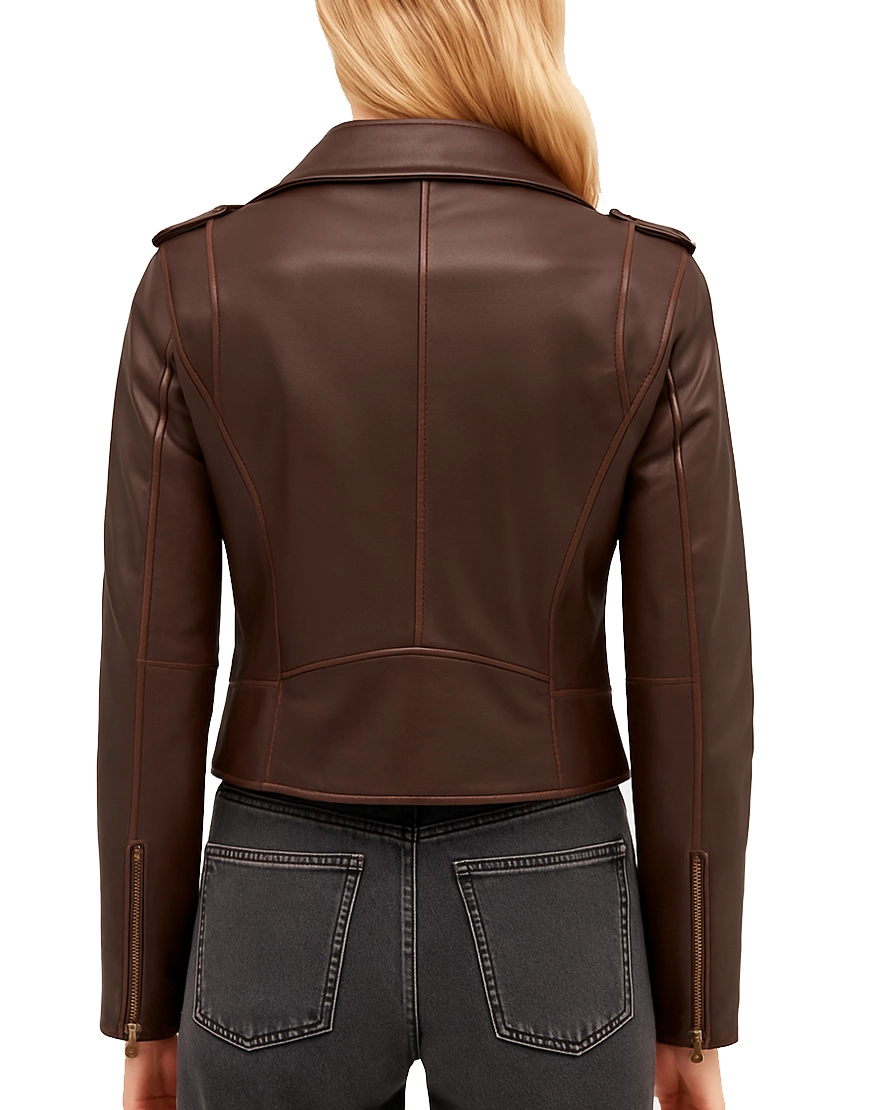 Biker Dark Brown Leather Jacket For Women