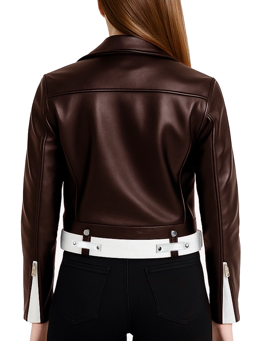 Brown and White Moto Jacket For Women